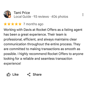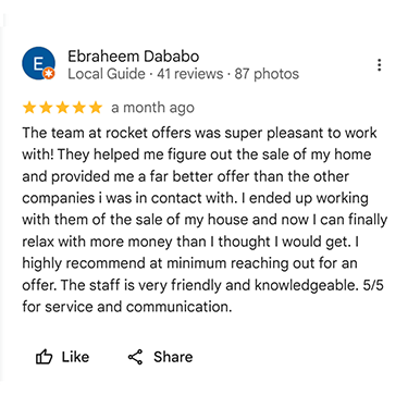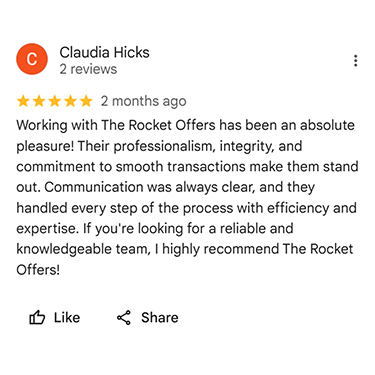 The Rocket Offers eliminates these hassles. We buy properties as-is for cash, so you can keep on living your life. Our goal is to make your home sale as simple as possible.